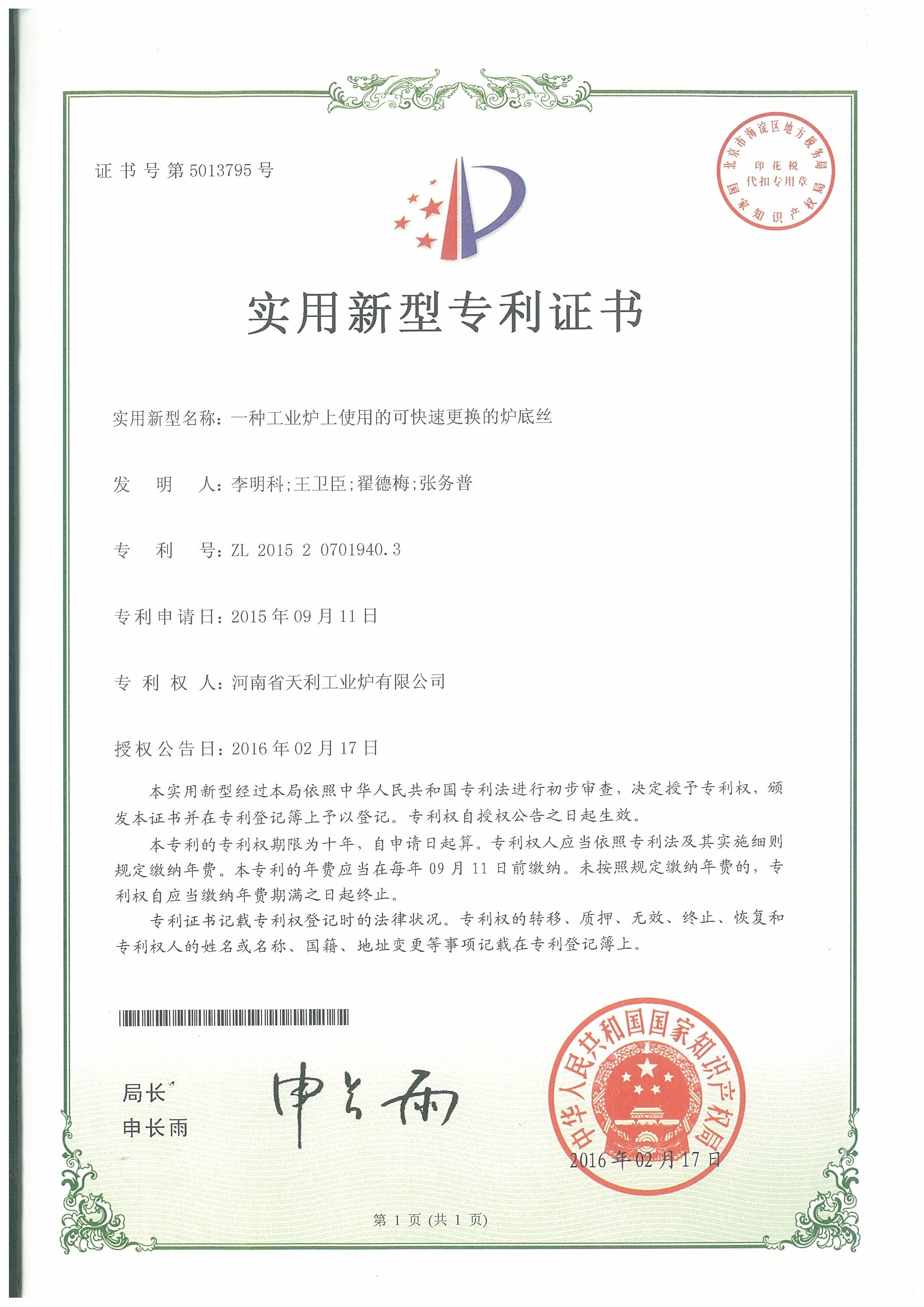 一種工業(yè)爐上使用的可快速更換的爐底絲