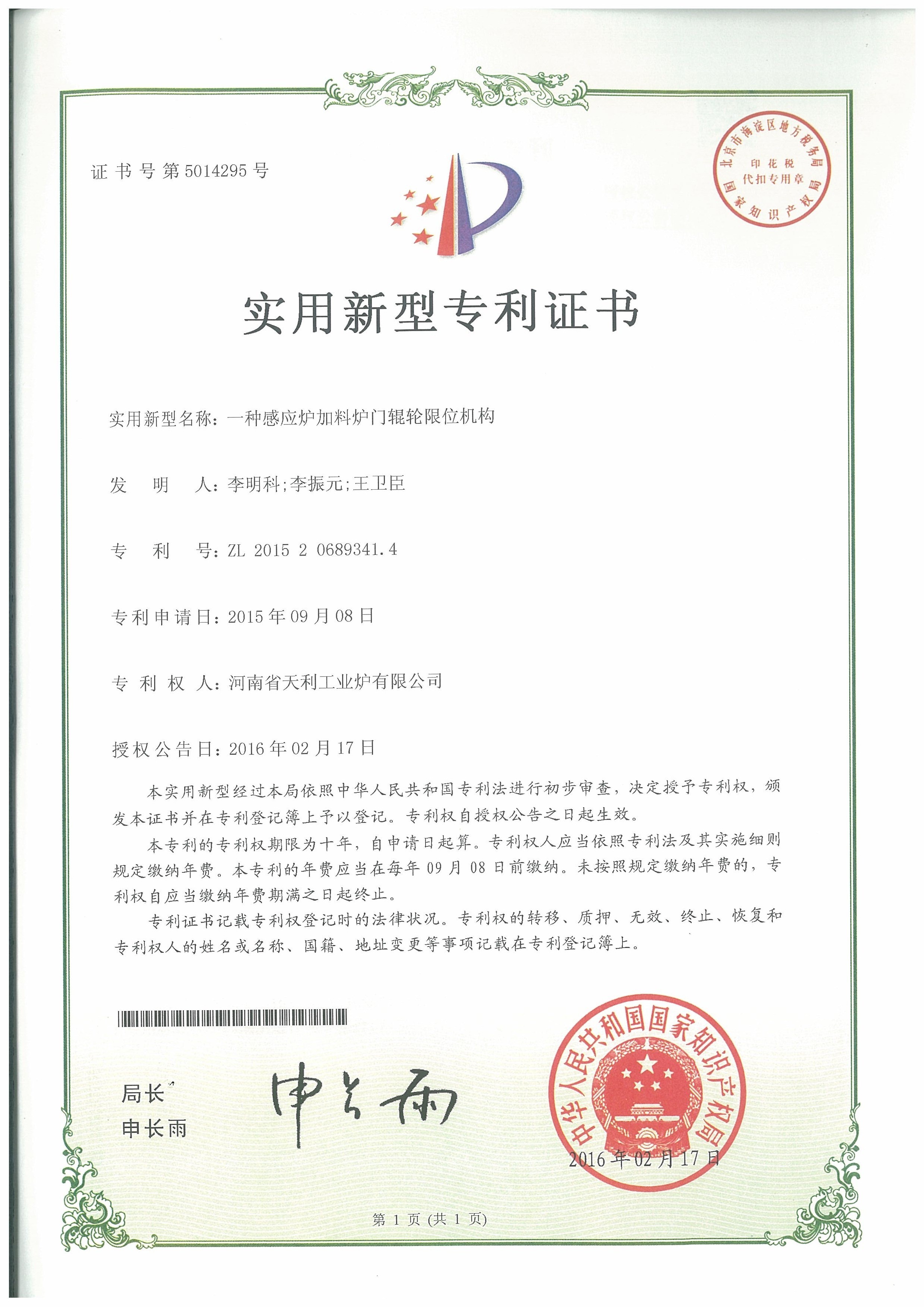 一種感應(yīng)爐加料爐門(mén)輥輪限位機(jī)構(gòu)