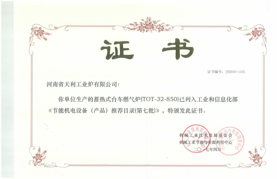 蓄熱式高速燃燒技術-國家節能證書