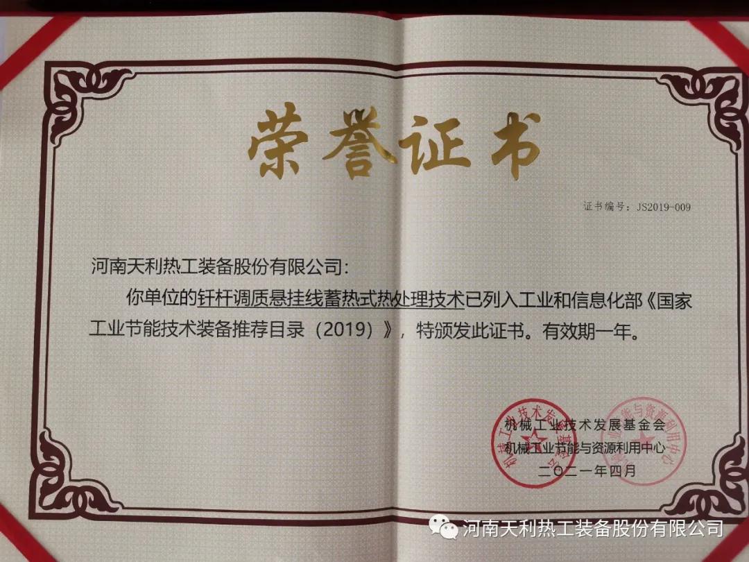 會議發布了2020年《國家工業節能技術裝備推薦目錄》及《“能效之星”產品目錄》入圍企業名單,并為2019、2020年入圍企業發放能效標識及相關證書。天利熱工兩項技術被列入推薦目錄,其中釬桿調質懸掛線蓄熱式熱處理技術被列入《國家工業節能技術裝備推薦目錄(2019)》,超大型4段蓄熱式高速燃燒技術被列入《國家工業節能技術裝備推薦目錄(2020)》