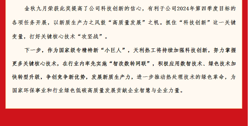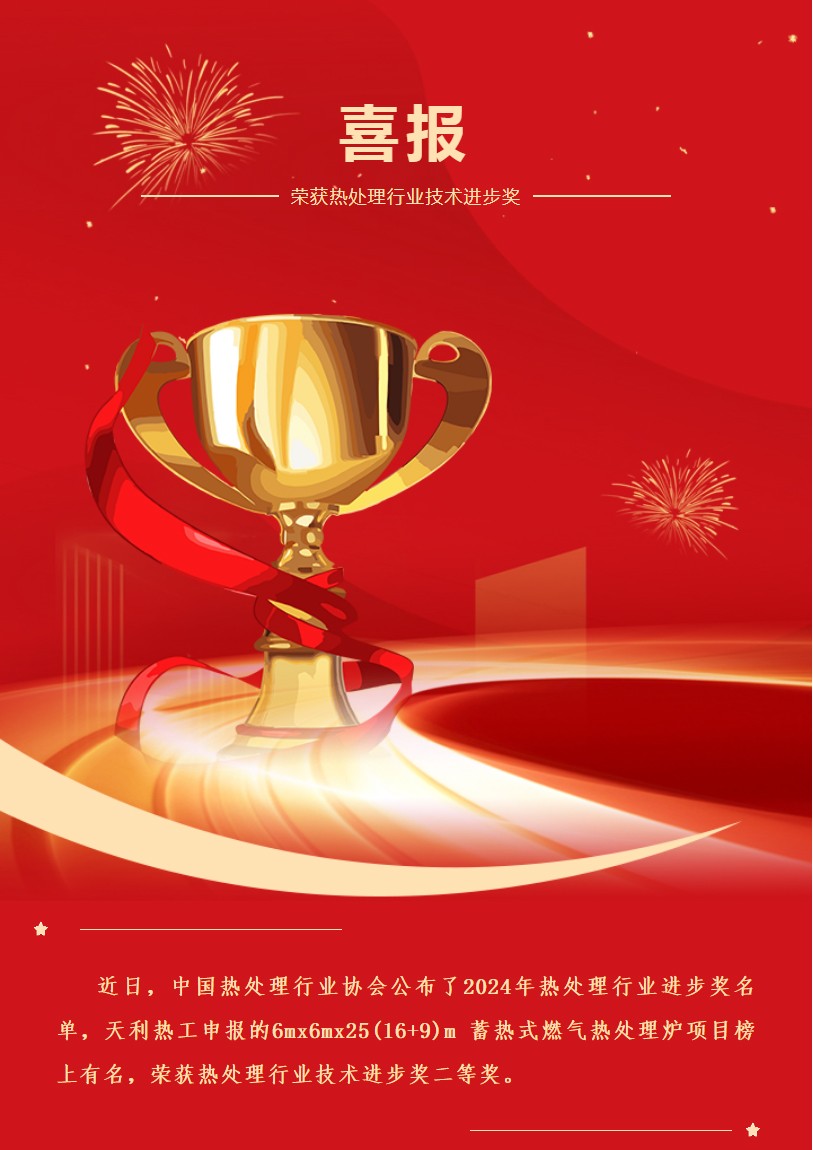 喜報(bào) | 天利熱工榮獲熱處理行業(yè)技術(shù)進(jìn)步獎(jiǎng)