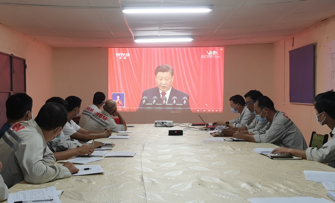 ![]() 中色鑫誠巴依姆項目部收看現場 |