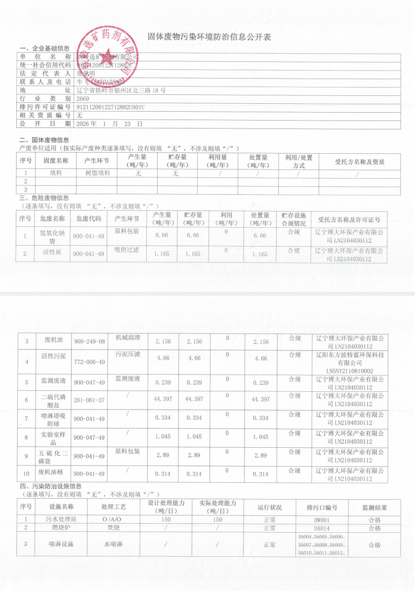 固體廢物污染環(huán)境防治信息公開(kāi)表