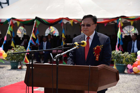 中國(guó)駐贊比亞大使李杰在儀式上致辭