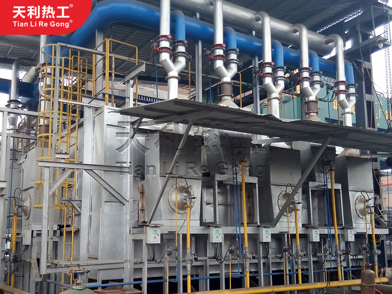 “RQT3-4000-12蓄熱式臺車燃氣加熱爐”是我公司研制的用于大型封頭類零件的加熱熱處理工藝的一種新型大型設備,具有密封性能好、智能化控溫、NOX化合特排放符合環保要求的特點,能夠大幅提高生產效率、降低人工成本、實現綠色節能的效果。NOx超低排放≤120mg(不加任何脫硝設備);實現了實用范圍600-1250度內超高爐溫均勻性±6℃;復合保溫工藝及迷宮式密封結構實現煙氣氧含量6%左右。