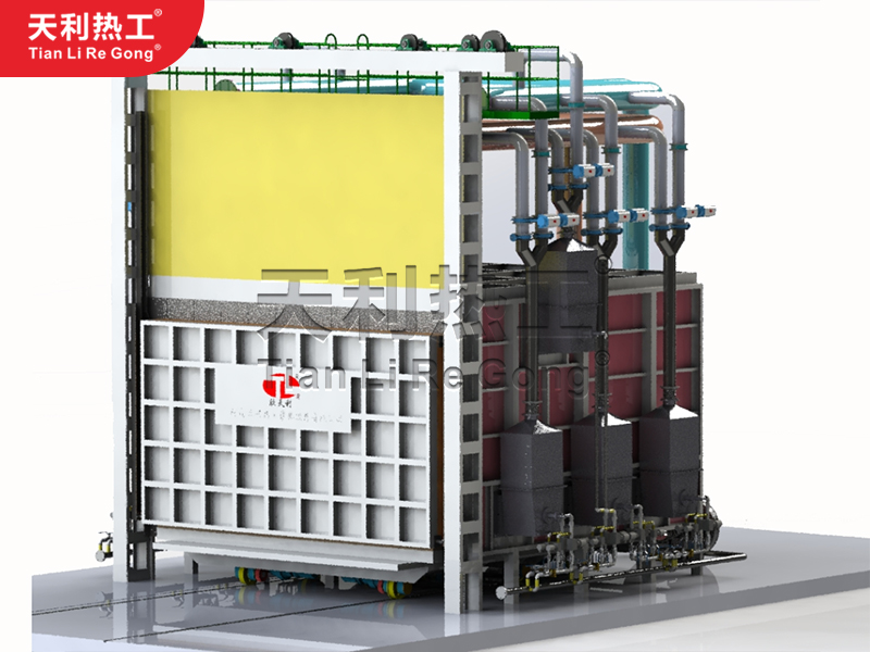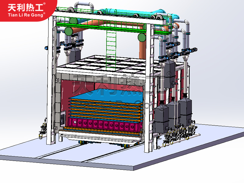 超低NOx排放燃氣爐主要由爐體、爐襯、爐門及爐門開啟機構、密封裝置、臺車及臺車行走機構、燃燒系統、天燃氣管路、空氣管路、排煙管路及電氣及自動控制系統等部分組成。